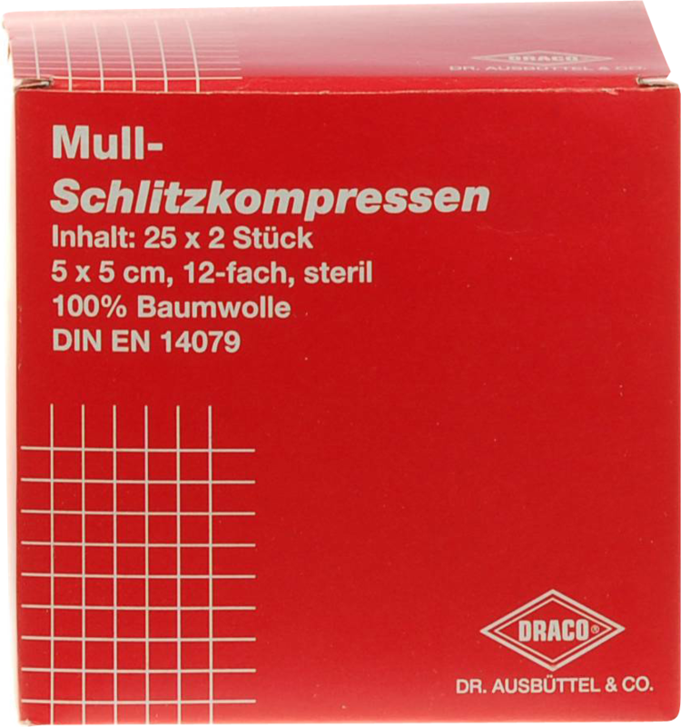 SCHLITZKOMPRESSEN Mull 5x5 cm steril 12fach 25X2 St