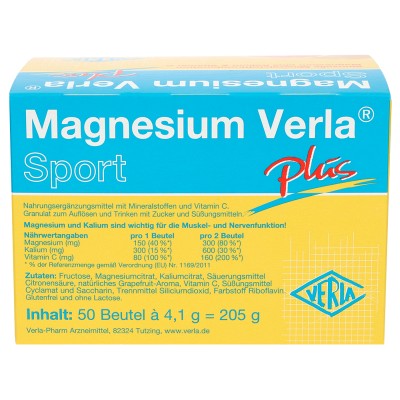 Magnesium ist außerdem wichtig für einen normalen Energiestoffwechsel und Kalium für die Aufrechterhaltung eines normalen Blutdrucks. Mit Magnesium Verla® plus können Sie Ihre Versorgung mit Magnesium und Kalium bei bzw. nach körperlicher Belastung individuell und sinnvoll unterstützen und Schweißverluste ausgleichen.