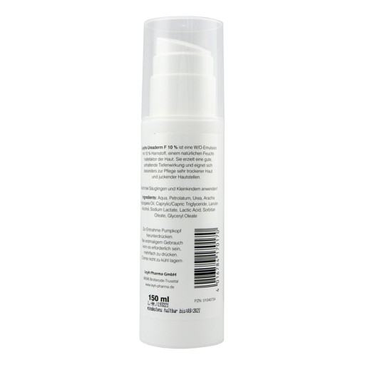 Leyhs Ureaderm F 10 % (W/O Emulsion) mit 10 % Harnstoff, einem natürlichen Feuchthaltefaktor der Haut, eignet sich besonders zur Pflege sehr trockener und rauer Haut mit juckenden Stellen. Sie verringert das Spannungsgefühl und erzielt eine gute und anhaltende Tiefenwirkung. Gleichzeitig unterstützt die wertvolle Milchsäure den natürlichen Schutzmantel und kontrolliert bakterielle Besiedlung der Haut, wirkt intensiv feuchtigkeits-spendend und löst sanft Verhornungen der oberen Hautschicht.Nicht bei Säuglingen und Kleinkindern anwenden!