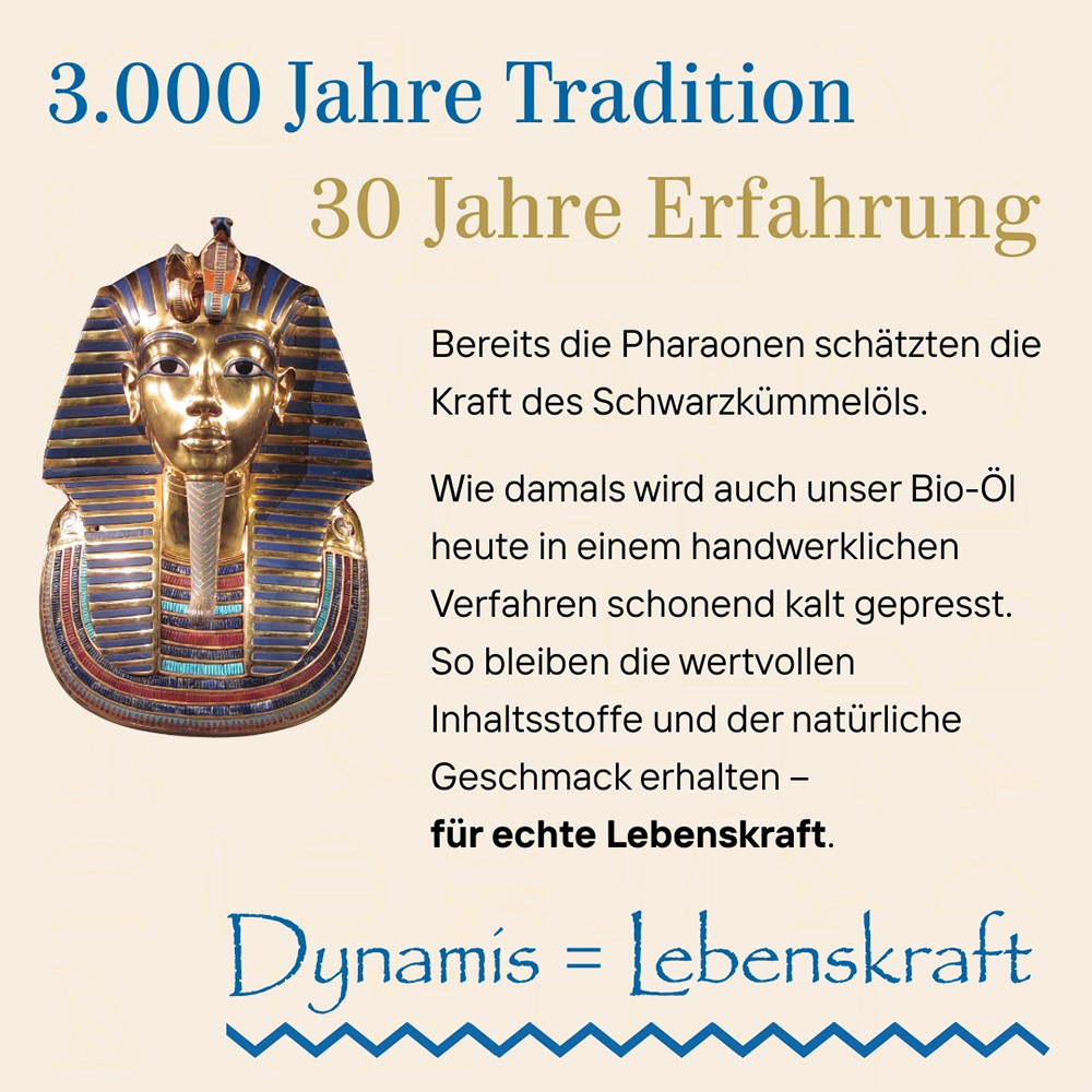 Seit Jahrzehnten pflegt DYNAMIS enge, vertrauensvolle Partnerschaften zu ausgewählten Landwirten in Ägypten. Diese Zusammenarbeit basiert auf Fairness, gegenseitigem Respekt und einem gemeinsamen Ziel: Schwarzkümmelöl in höchster BIO-Qualität zu erzeugen. Die Saat wird ohne Zwischenhändler direkt von langjährig vertrauten Erzeugern bezogen – so bleibt die Herkunft transparent und die Qualität konstant.Jahrzehntelange Erfahrung in der handwerklichen Verarbeitung und regelmäßige, unabhängige Qualitätskontrollen sichern ein naturbelassenes Öl, das in Geschmack, Farbe und Reinheit überzeugt. Zertifiziert durch die Öko-Kontrollstelle DE-ÖKO-003, steht DYNAMIS für kompromisslose BIO-Qualität, gelebte Nachhaltigkeit und faire Handelsbeziehungen.