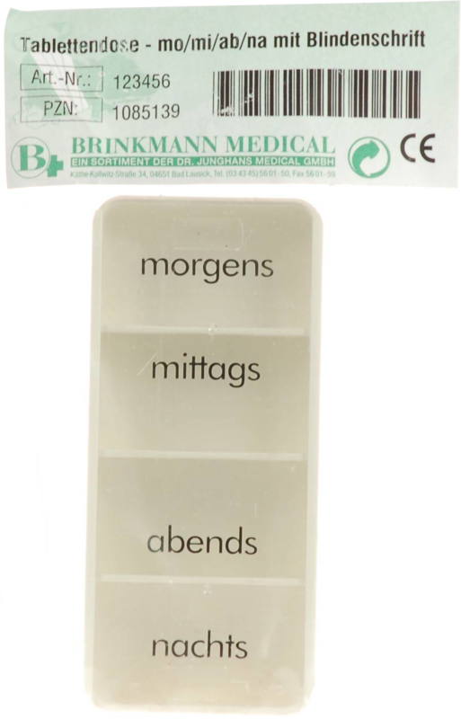 TABLETTENDOSE mo/mi/ab/na m.Blindenschrift 1 St