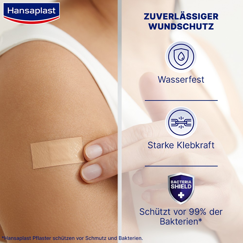 Hansaplast Universal ist hautfreundlich, wasser- und schmutzabweisend und ist speziell zur Versorgung von kleinen Verletzungen geeignet, die Verschmutzungen in feuchter Umgebung ausgesetzt sind.Hansaplast Universal besteht aus einem Vlies-Folien-Laminat mit Vlieswundauflage, die nicht mit der Wunde verklebt. Die Hansaplast die Injektionspflaster sind latexfrei.