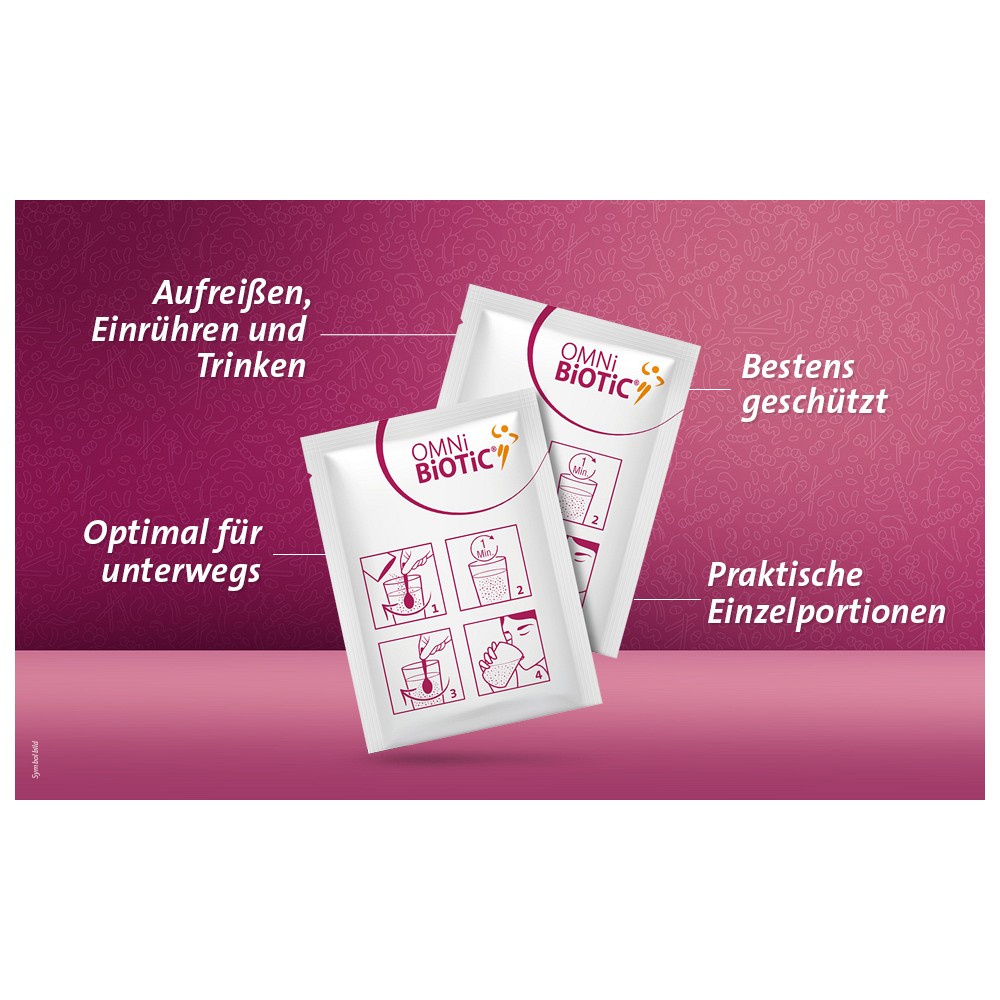 1 x täglich 1 Beutel OMNi-BiOTiC POWER (= 4 g) in ca. 1/8 l Wasser oder auch (verdünnten) Fruchtsaft, Milch, Tee (bis max. 40 C), Joghurt o. Ä. einrühren, mindestens 1 Minute Aktivierungszeit abwarten, nochmals umrühren und dann verzehren.Bitte beachten Sie generell: