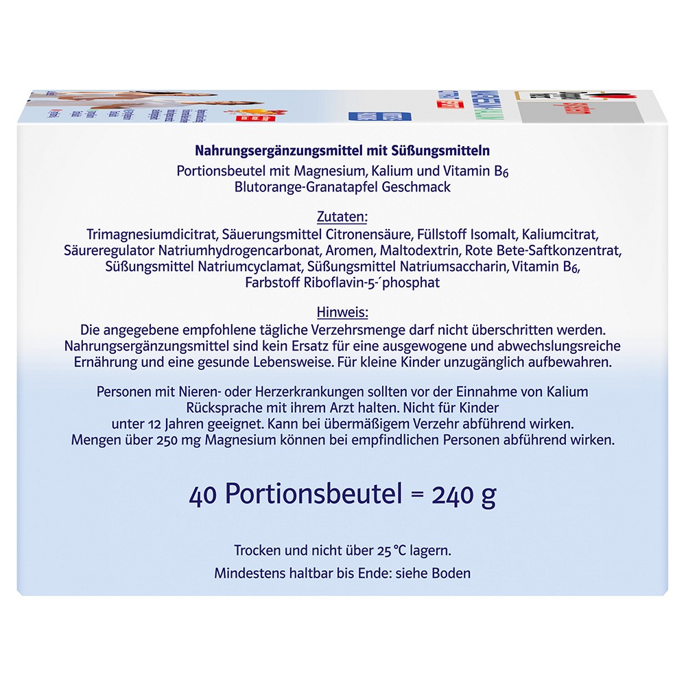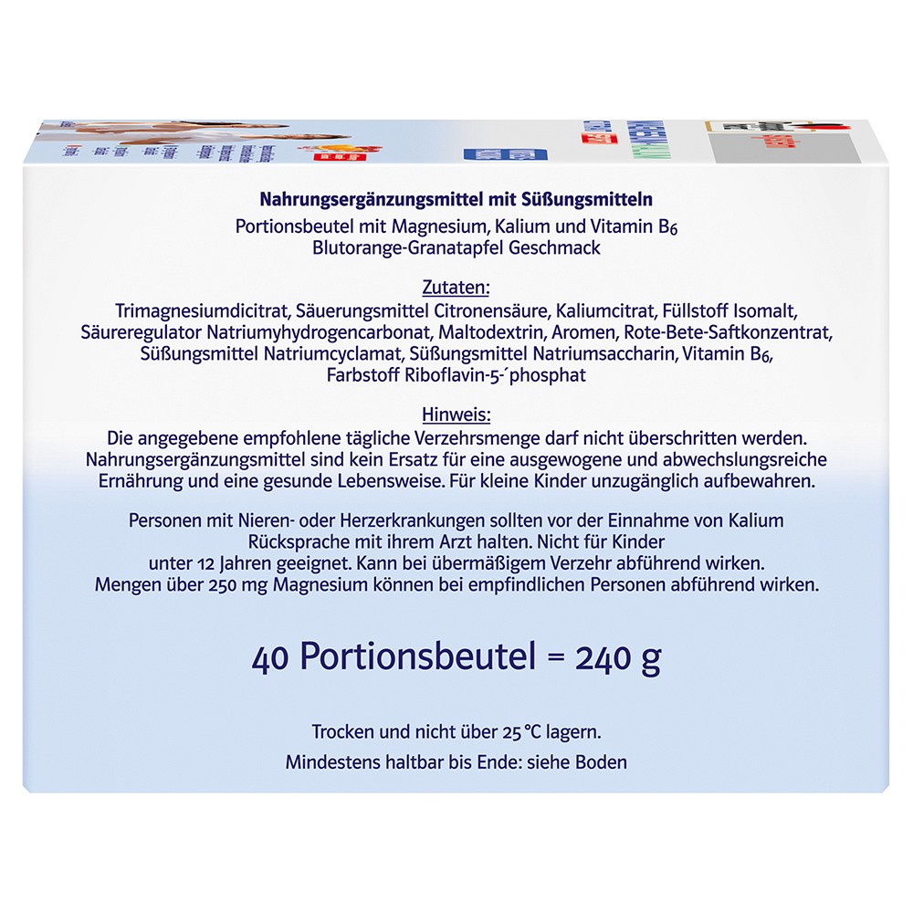 Portionsbeutel mit Magnesium, Kalium und Vitamin B6. Blutorange-Granatapfel Geschmack
