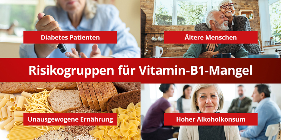 Diabetes-Patienten sind besonders gefährdet, da sie ein erhöhtes Risiko für Vitamin-B1-Mangel haben.1 Bei diesen Patienten wird Vitamin B1 verstärkt über die Nieren ausgeschieden, was zu einer deutlich geringeren Konzentration im Blut führt als bei gesunden Menschen und so zu Neuropathien bzw. Polyneuropathien führen kann.1 In Deutschland entwickeln etwa 30% der Diabetiker eine Neuropathie.2