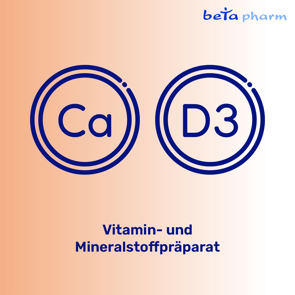 Warnhinweis: Calcium D3 beta enthält Sojaöl. Partiell hydriertes Sojaöl kann sehr selten allerg. Reakt. hervorrufen. Calcium D3 beta enthält Sucrose (Zucker) u. Lactose. Bitte nehmen Sie Calcium D3 beta erst nach Rücksprache mit Ihrem Arzt ein, wenn Ihnen bekannt ist, dass Sie unter einer Zuckerunverträglichkeit leiden. Calcium D3 beta kann schädlich für d. Zähne sein. Calcium D3 beta enthält 96,2 mg Natrium (Hauptbestandteil v. Kochsalz/Speisesalz) pro Brausetablette. Dies entspricht 4,8 % d. für einen Erwachsenen empfohl. max. tägl. Natriumaufnahme mit d. Nahrung.