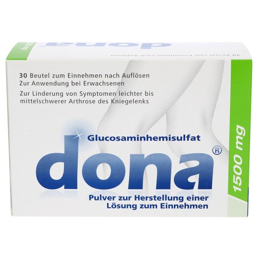 | ANWENDUNGSEMPFEHLUNG: Soweit vom Arzt nicht anders verordnet, nehmen Erwachsene täglich 1500 mg DONA® ein. Ein Beutel DONA® 1500 mg Pulver wird in einem Glas Flüssigkeit aufgelöst zu einer Mahlzeit getrunken. DONA® Tabletten können, auf mehrere Einzeldosen am Tag verteilt, mit einem Glas Flüssigkeit zu den Mahlzeiten eingenommen werden. Wenn sich allerdings die Beschwerden verschlimmern, oder nach 2 – 3 Monaten keine Besserung eintritt, sollte ein Arzt aufgesucht werden. |
