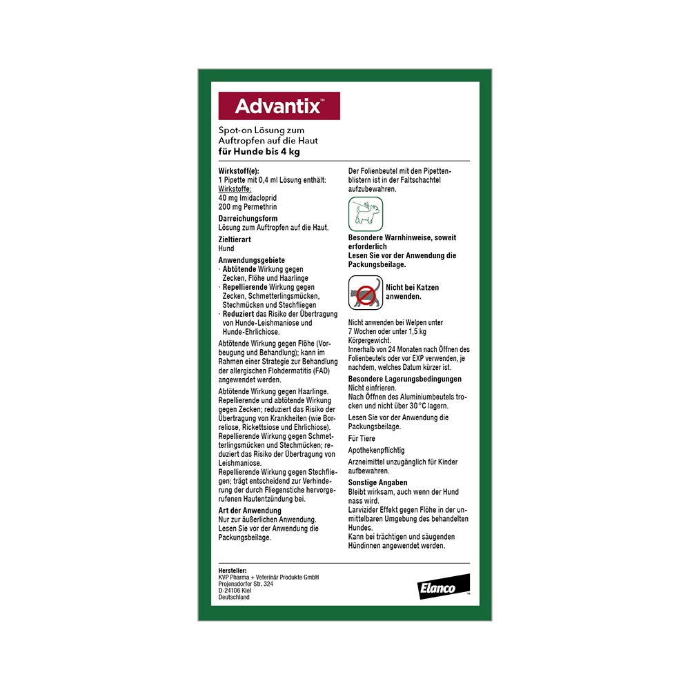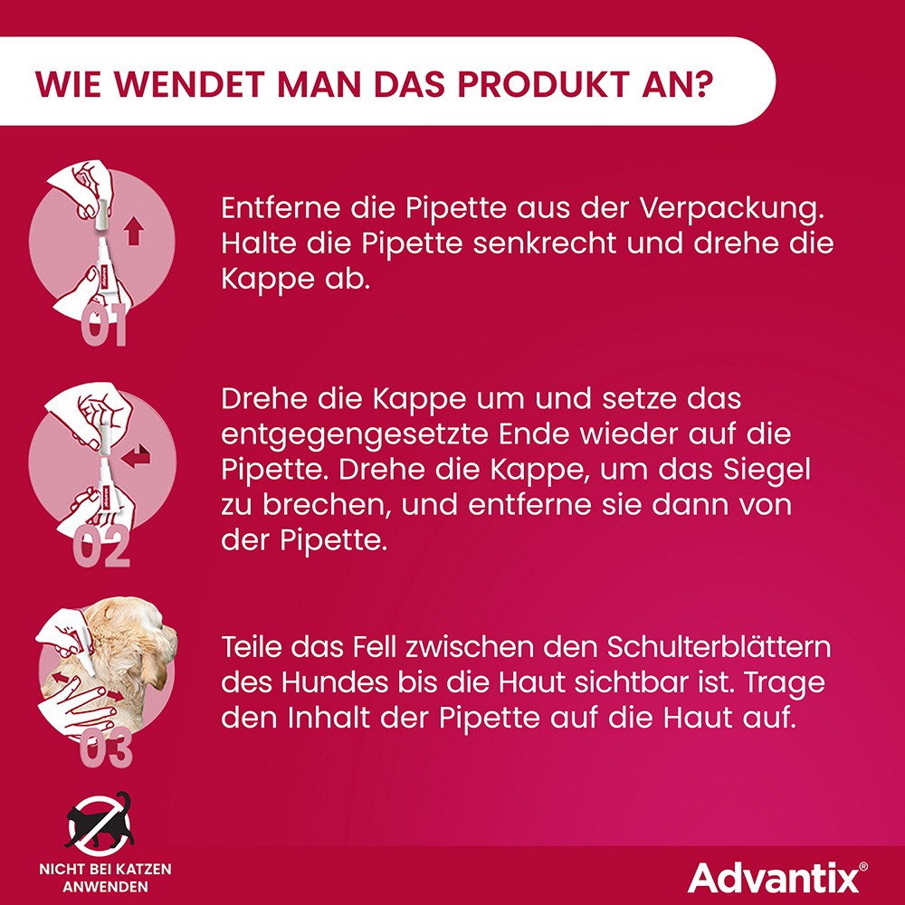 Warnhinweise: Nicht bei Katzen anwenden. Advantix ist ein Tierarzneimittel. Apothekenpflichtig.