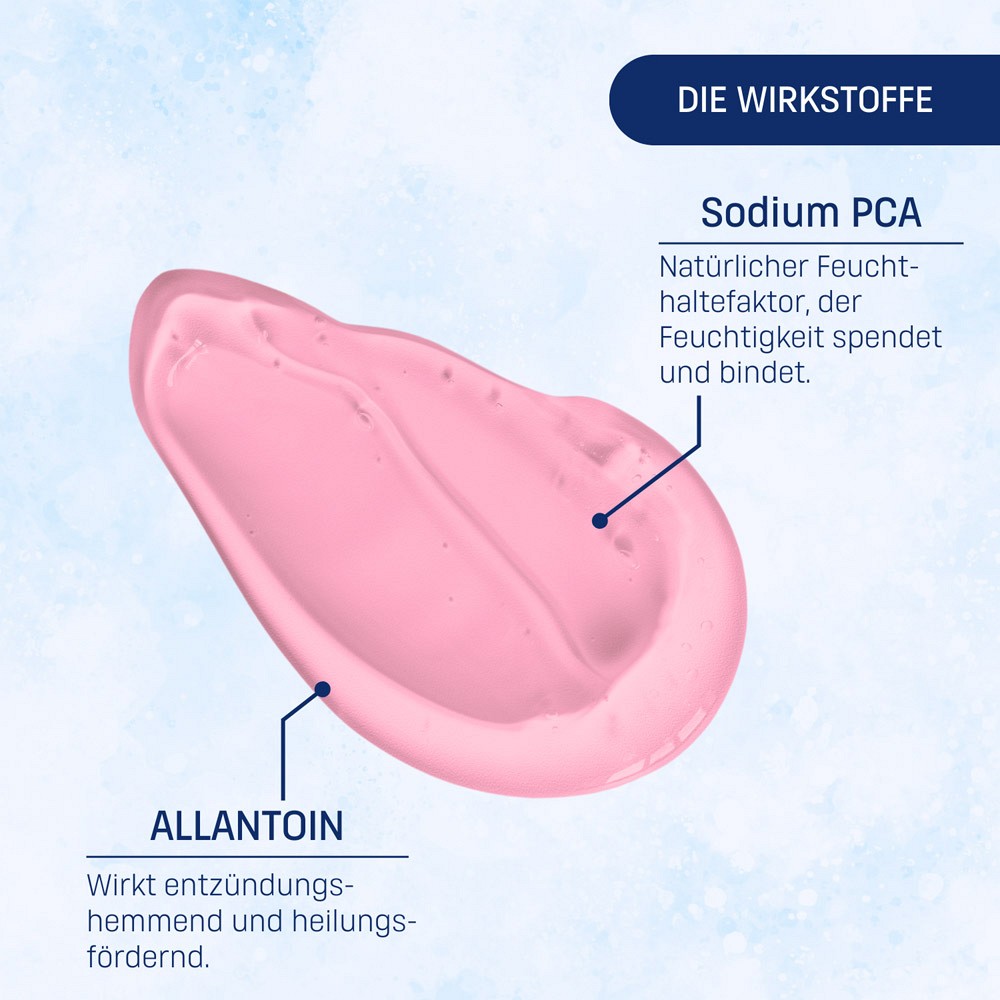 - Allantoin und ein natürlicher Feuchthaltefaktor schützen bei regelmäßiger Anwendung die Haut und mildern Hautirritationen