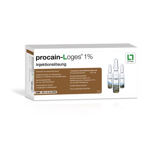 Gegenanzeigen: überempfindlichkeit gegenüber Procainhydrochlorid, Lokalanästhetika vom Ester-Typ, Sulfonamide, Benzoesäure (Parabene) oder einem der sonstigen Bestandteile; bekannter Mangel an Pseudocholinesterase mit der Folge erheblich herabgesetzter Enzymaktivität; intraarterielle, peridurale oder spinale Injektion. Nebenwirkungen: Wesentliche dosisabhängige Nebenwirkungen von Procain betreffen das Zentralnerven- und das Herz-Kreislauf-System. Bei Plasmakonzentrationen, wie sie bei regelrechter Anwendung im Allgemeinen erreicht werden, wird der Blutdruck in der Regel nur geringgradig durch die positiv inotrope und positiv chronotrope Wirkung von procain-Loges® 1% Injektionslösung beeinflusst. Procain kann EKG-Veränderungen (T-Welle abgeflacht, ST-Strecke verkürzt) auslösen. Ein Blutdruckabfall kann ein erstes Zeichen für eine relative überdosierung im Sinne einer kardiotoxischen Wirkung sein. Als zentralnervöse Störungen können periorale Missempfindungen, Unruhe, Delirium, tonisch-klonische Krämpfe ausgelöst werden. Allergische Reaktionen auf Procain-haltige Injektionslösungen in Form von Urtikaria, ödem, Bronchospasmus oder eines Atemnotsyndroms sowie Kreislaufreaktionen werden selten beschrieben. Lokale Allergien und pseudoallergische Reaktionen in Form einer Kontaktdermatitis mit Erythem, Pruritus bis hin zur Blasenbildung können bei Kontakt mit Ester-Lokalanästhetika auftreten. Darüber hinaus können als lokale Reaktionen bei subkutaner Applikation Schwellungen, ödeme, Erytheme und Hämatome vorkommen. Warnhinweis: Enthält Natriumchlorid.