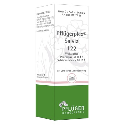 Pflügerplex® Salvia 122 ist ein homöopathisches Arzneimittel. Das Anwendungsgebiet leitet sich von den homöopathischen Arzneimittelbildern ab. Dazu gehört: Vermehrte Schweißbildung.