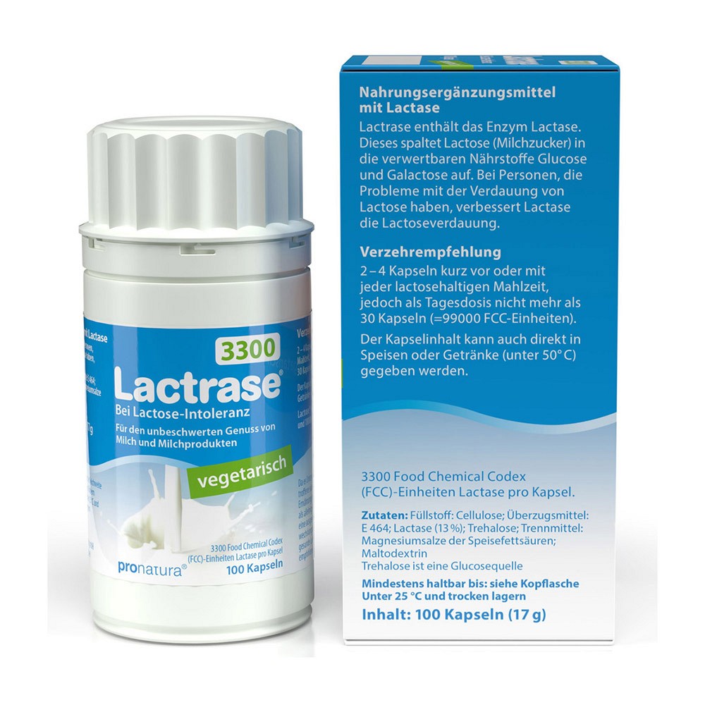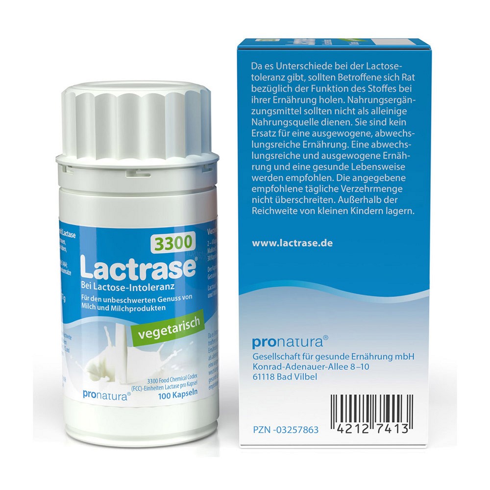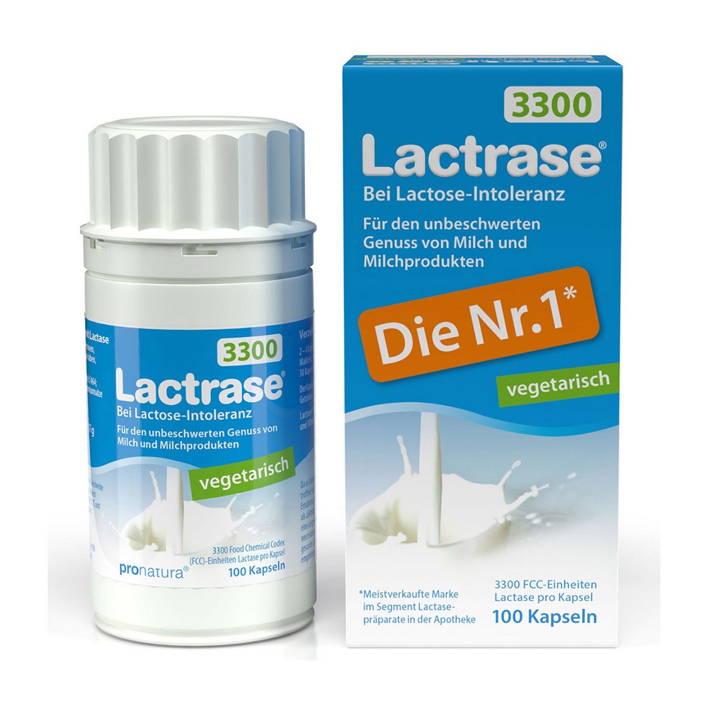 Lactrase 3300 unterstützt mit seiner millionenfach bewährten Sofortwirkung die Verdauung von Lactose (Milchzucker) und ermöglicht somit den Genuss von Milchprodukten. Das in den Kapseln enthaltene Enzym Lactase ersetzt die bei Lactoseunverträglichkeit fehlende körpereigene Lactase und spaltet die Lactose in ihre leicht verwertbaren Bestandteile Glucose und Galactose auf. So wird der Genuss von Eisbechern, Cremesuppen und Joghurts wieder möglich.