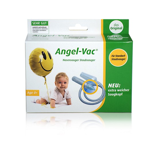 Der Angel-Vac wird an einen handelsüblichen Staubsauger angeschlossen. Während des Absaugens reguliert das Gerät automatisch die Saugkraft und sichert somit das kontrollierte Absaugen des Sekrets aus der Nase und den inneren Gängen des Kopfes.