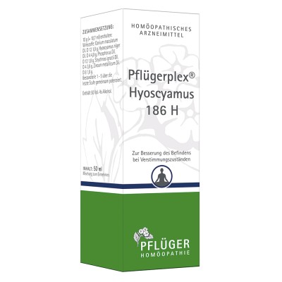 Pflügerplex® Hyoscyamus 186 H ist ein homöopathisches Arzneimittel bei nervösen Erkrankungen. Das Anwendungsgebiet leitet sich von den homöopathischen Arzneimittelbildern ab. Dazu gehört: Besserung des Befindens bei Verstimmungszuständen.