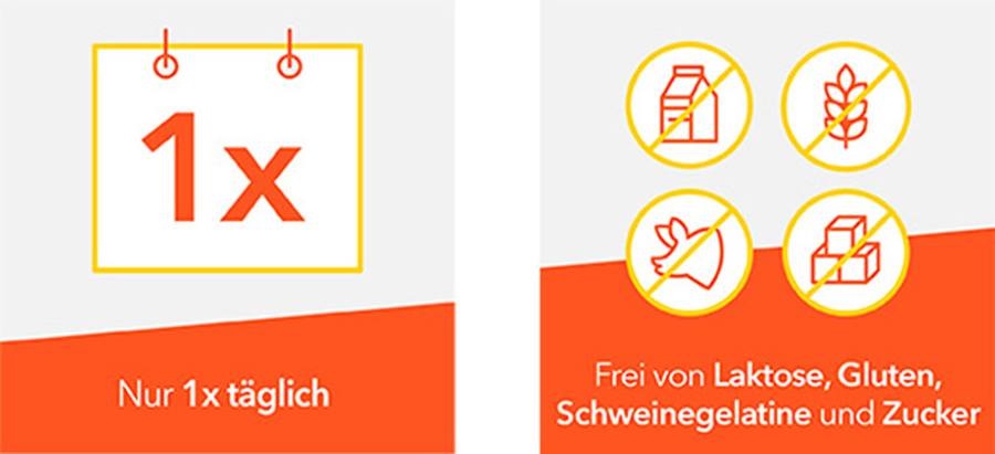 - Enthält keine Laktose, kein Gluten, keinen Zucker und keine Schweinegelatine