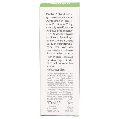 Plantur 39 Struktur Pflege vrsorgt das Haar mit Aufbaustoffen aus einem Provitamin B5 Hydropolymer Komple
