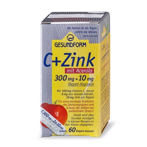 &.lt.b&.gt.Gesundform C+Zink+Acerola Depot Kapseln&.lt./b&.gt.&.lt.br&.gt.&.lt.br&.gt.Depot-Kapseln mit 300 mg Vit. C, davon 6 mg aus Acerola und 10 mg Zink aus Zink-Gluconat pro Kapsel &.lt.br&.gt.&.lt.br&.gt.