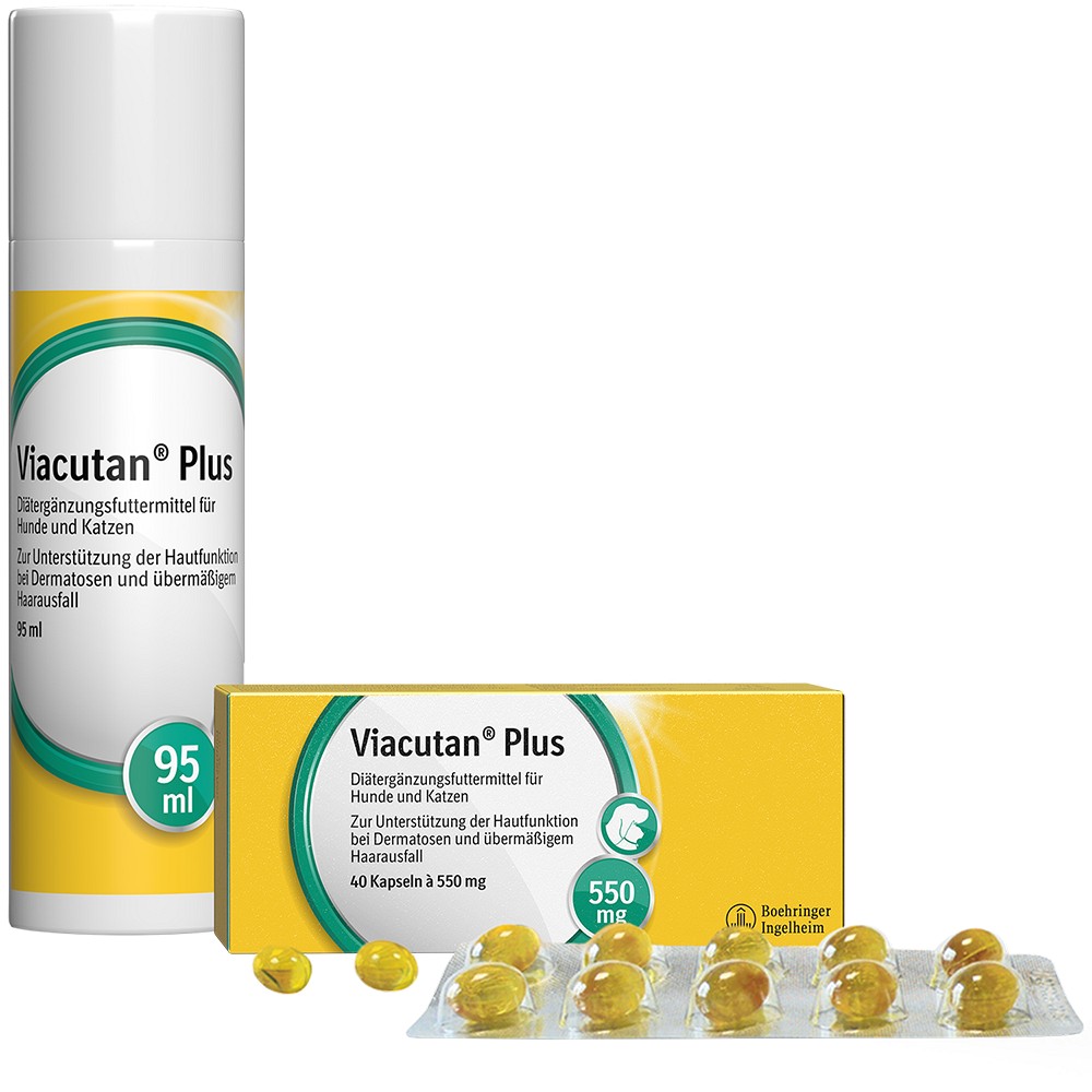 Viacutan Plus Doser / Viacutan Plus Kapseln – Diätergänzungsfuttermittel für Hunde und Katzen zur Unterstützung der Hautfunktion bei Dermatose und übermäßigem Haarausfall