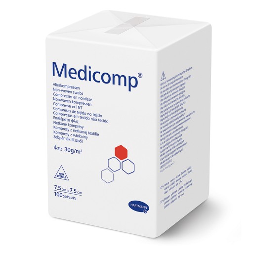Zur allgemeinen Wundversorgung. als Tupfer und als Kompressen bei ambulanten und stationären Eingriffen. Vor der Verwendung auf offenen Wunden müssen Medicomp® unsteril in einem validierten Verfahren sterilisiert werden.- Vlieskompresse, allgemeine Wundversorgung
