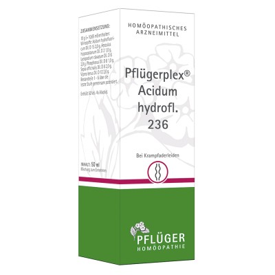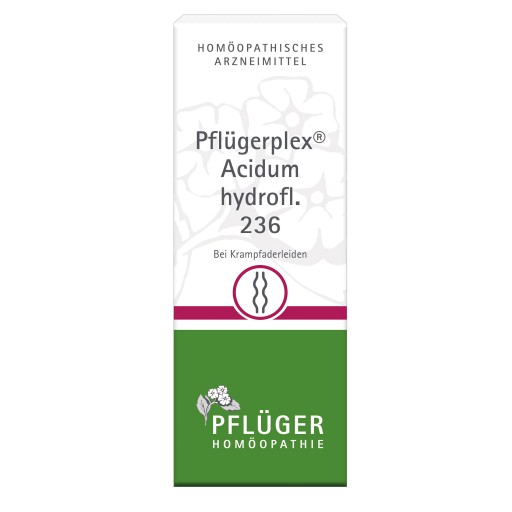 Pflügerplex® Acidum hydrofl. 236 ist ein homöopathisches Arzneimittel bei Erkrankungen des Gefäßsystems. Das Anwendungsgebiet leitet sich von den homöopathischen Arzneimittelbildern ab. Dazu gehören: Krampfaderleiden.