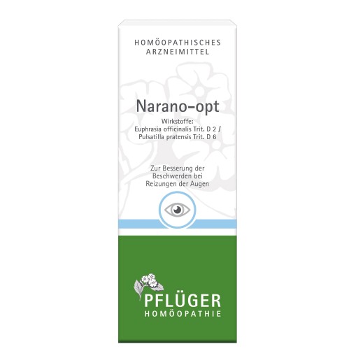 Narano-opt ist ein homöopathisches Arzneimittel bei Augenerkrankungen. Das Anwendungsgebiet leitet sich von den homöopathischen Arzneimittelbildern ab. Dazu gehört: Besserung der Beschwerden bei Reizungen der Augen.