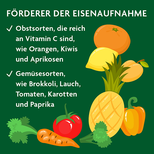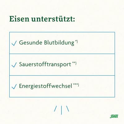**) Eisen wird für den Sauerstofftransport und die Bildung von Hämoglobin benötigt.