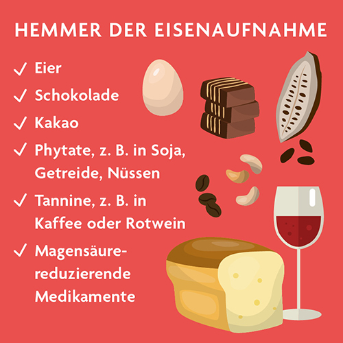 Darüber hinaus ist Eisen am Abwehrsystem des Körpers und der Zellteilung beteiligt.