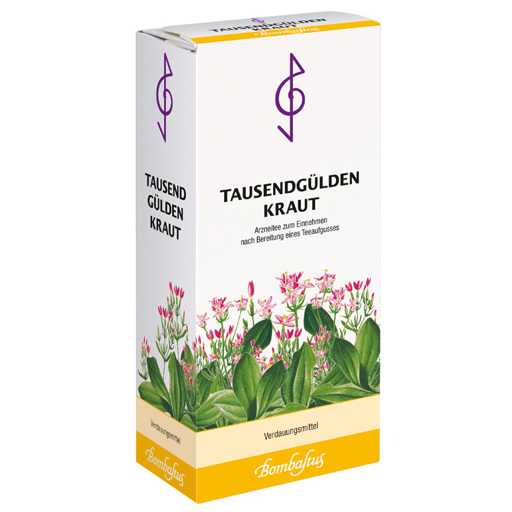 Anwendungsgebiete: Tausendgüldenkraut ist ein pflanzliches Magen-Darm-Mittel. Dieser Arzneitee wird bei Appetitlosigkeit, Verdauungsbeschwerden, besonders bei funktionellen Störungen des ableitenden Gallensystems angewendet.