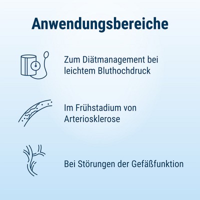 Telcor® Arginin plus ist ein Lebensmittel für besondere medizinische Zwecke (bilanzierte Diät) und mit seiner speziellen Nährstoffkombination zum Diätmanagement bei leichtem Bluthochdruck, Störungen der Gefäßfunktion (u.a. Durchblutungsstörungen) im Frühstadium von Arteriosklerose sowie erhöhtem Homocysteinspiegel geeignet.Bei Bluthochdruck und Durchblutungsstörungen im Frühstadium von Arteriosklerose besteht oft krankheitsbedingt ein spezifischer Mehrbedarf an Arginin, der sehr oft mit Mangelzuständen der Vitamine B6, B12 und Folsäure einhergeht. Fehlen diese B-Vitamine, sind häufig die Homocysteinkonzentrationen im Blut erhöht.