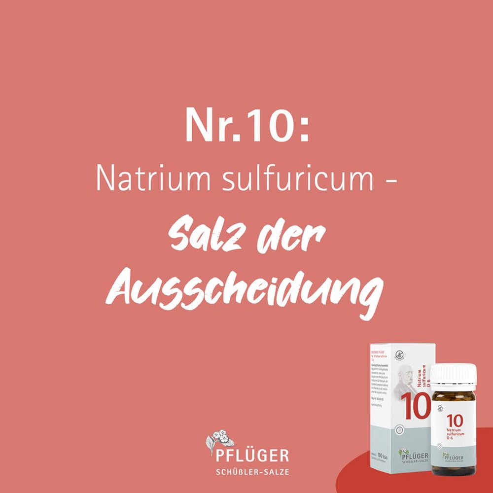 **Ein ausgeglichener Mineralstoffhaushalt spielt für unseren Körper eine entscheidende Rolle. Das Schüßler-Salz Nr. 10 Natrium sulfuricum von Pflüger ist das Salz der Ausscheidung.**Natrium sulfuricum kommt im Körper im Serum, in der Leber und in der Galle vor.