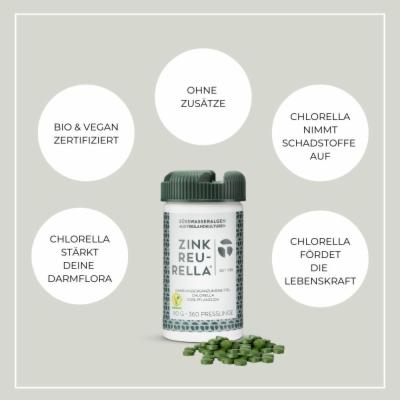 Süßwasseralge Chlorella pyrenoidosa mit hohem Anteil an organischem Zink in hoher Bioverfügbarkeit aus natürlicher Freilandkultur.- natürlicher Zinklieferant aus Freilandkultur mit hoher Bioverfügbarkeit