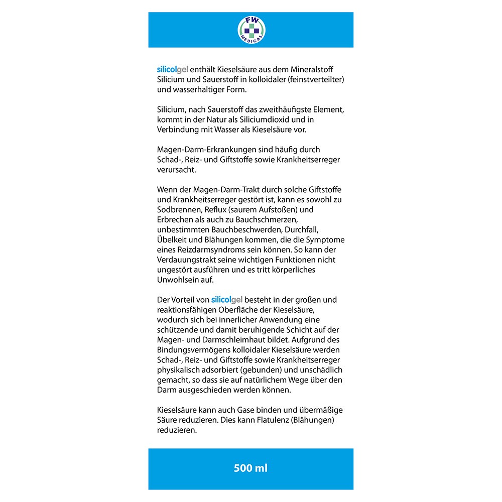 silicolgel soll mindestens 1 Stunde vor oder nach der Einnahme von Medikamenten eingenommen werden.