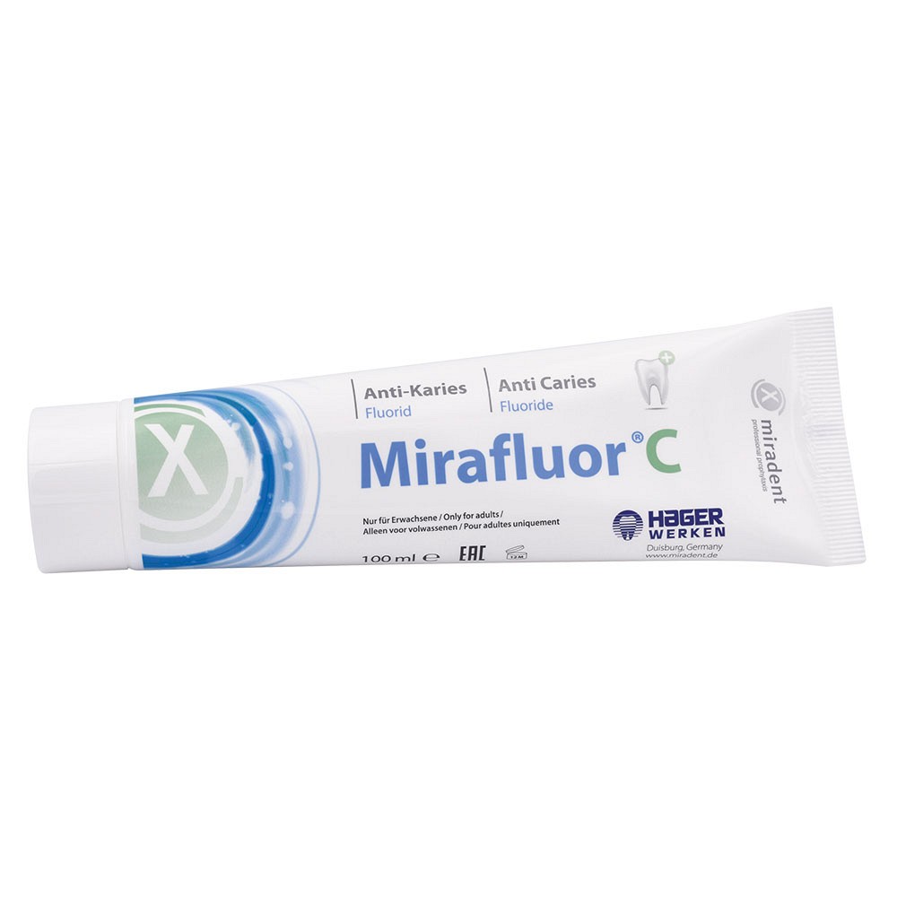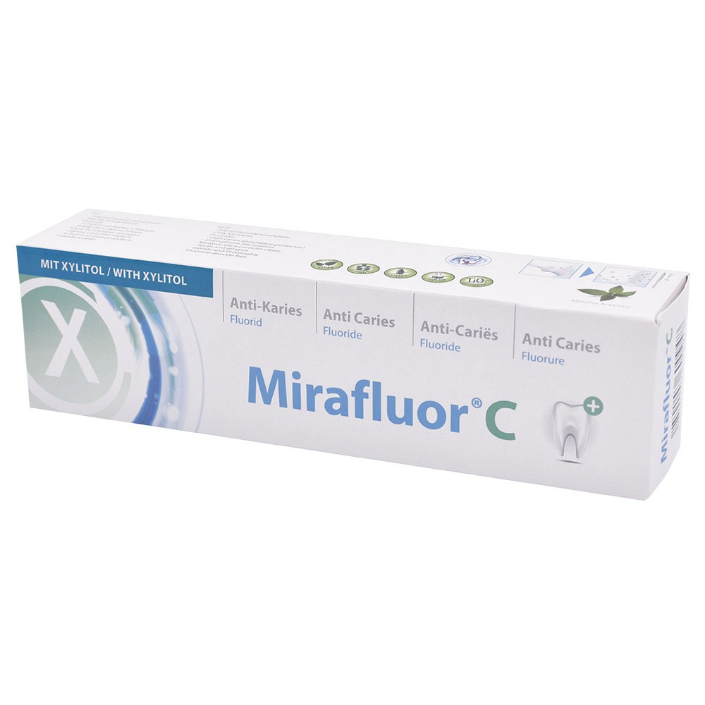 Fluoridverbindungen werden hohe plaquereduzierende Effekte zugeschrieben. Die Anwendung von Mirafluor C Fluorid-Zahncreme (1.450 ppm Fluorid) führt zu einer erhöhten Fluoridkonzentration im Speichel, die karieshemmend wirkt.Dank der Oberflächenaktivität verteilen sich die Fluoride rasch in der Mundhöhle, bedecken die Zahnoberflächen gleichmäßig mit einer homogenen, molekularen Schicht und bringen das Fluorid dorthin, wo es gebraucht wird. Die Konsistenz des Films verhindert ein schnelles Auswaschen durch den Speichel.