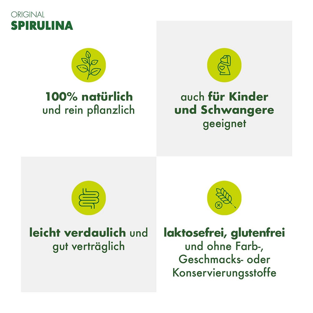 - Original Spirulina ist auch für Veganer, Kinder, Schwangere und Stillende geeignet!
