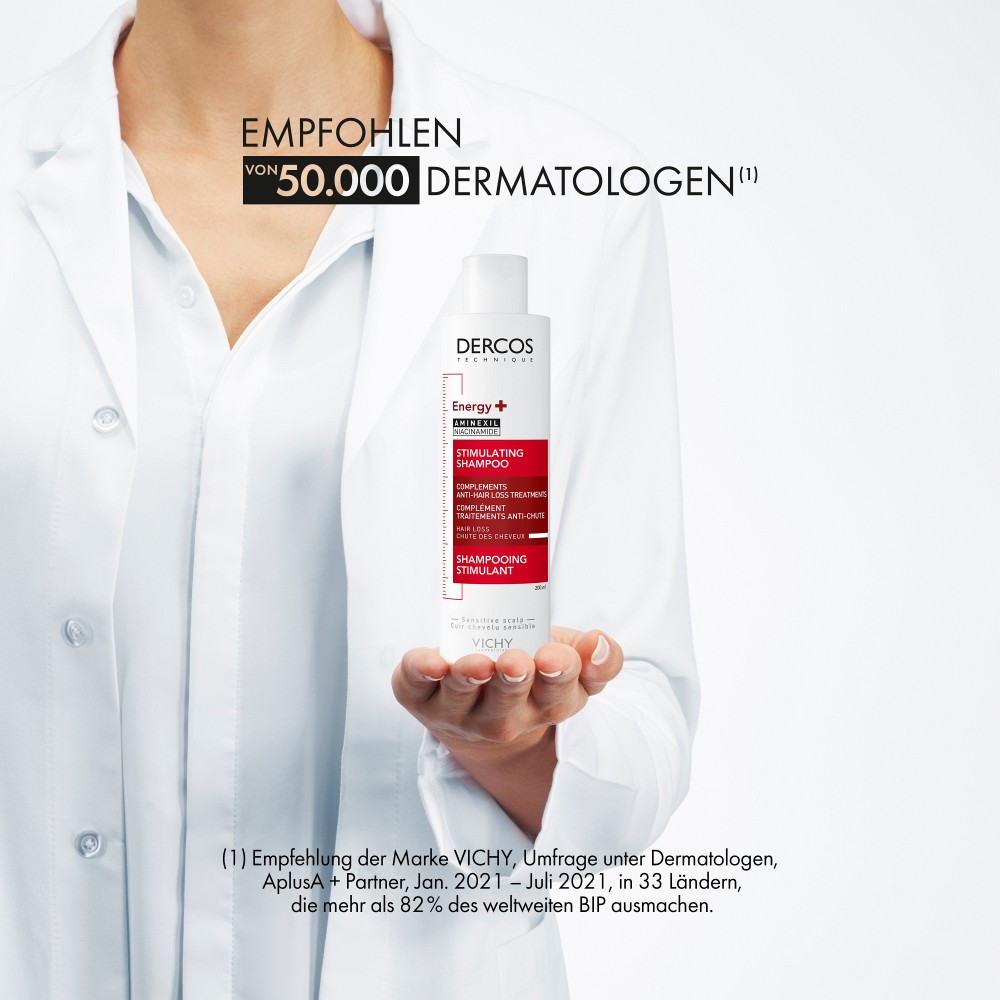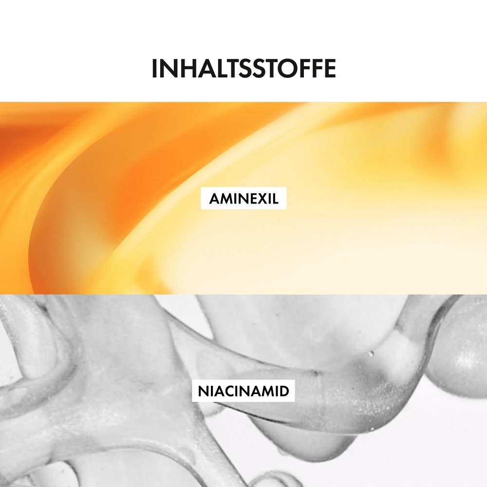 Als Referenzmolekül in der Pharmazie gegen Haarausfall entstammt Aminexil aus einer 10jährigen Forschung und wird über 2 Patente geschützt. Die Wirksamkeit konnte im Vergleich zu Placebo nachgewiesen werden. Aminexil wiedersetzt sich der Versteifung der Kollagenumhüllung*, damit das Gewebe, das die Wurzel umgibt, geschmeidig und elastisch bleibt, so dass sie sich fester in der Kopfhaut verankern kann.Laboratoires Vichy bietet das Energisant Zusatzshampoo für die Behandlung gegen Haarausfall, das einzige Aminexil-Shampoo, an. Das Haar wird kräftiger, die Wurzeln werden bis in die Tiefe robuster.