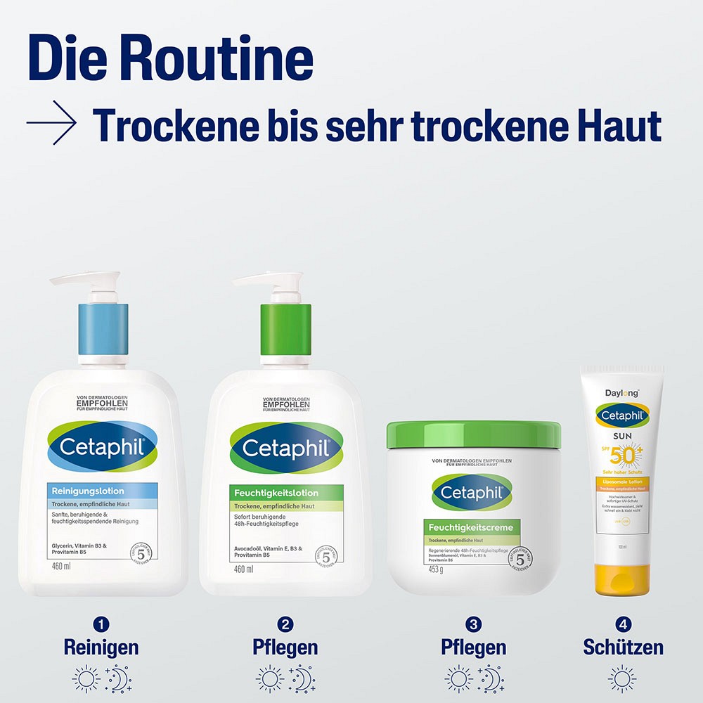 Anwendungsempfehlung für die Cetaphil Feuchtigkeitslotion