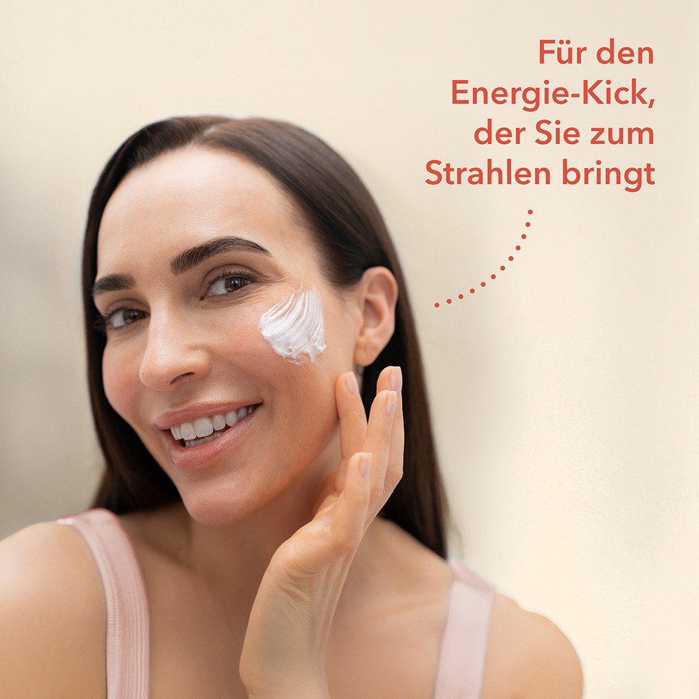 - Die Haut sieht sichtbar aufgeweckt aus, erscheint ebenmäßiger und erhält einen Energie-Kick, der sie zum Strahlen bringt.