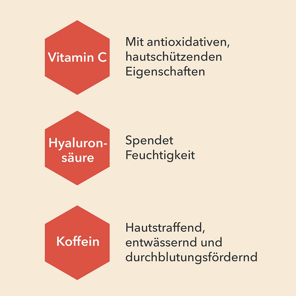 - Die Maske enthält naturreine Totes Meer Mineralien & die belebende Wirkkombination aus Vitamin C, Camu-Camu, Koffein und Hyaluronsäure für einen Anti-Müdigkeits-Effekt.
