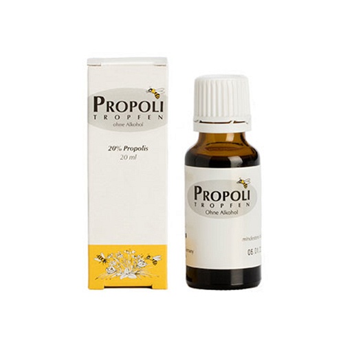 Propolis Tropfen 20% ohne Alkohol weisen keim- und entzündungshemmende Eigenschaften auf. Dies liegt am Schutzharz der Bienen, der Propolis. Der Naturstoff wird von Honigbienen aus dem Baumharz verschiedener Laubbäume hergestellt, um ihren Bienenstock vor Fremdkörpern wie Bakterien, Viren und Pilzen zu schützen.Daher eignen sich die Tropfen auch zur Stärkung des Zahnfleisches, bei Aphten oder kleinen äußerlichen Wunden.