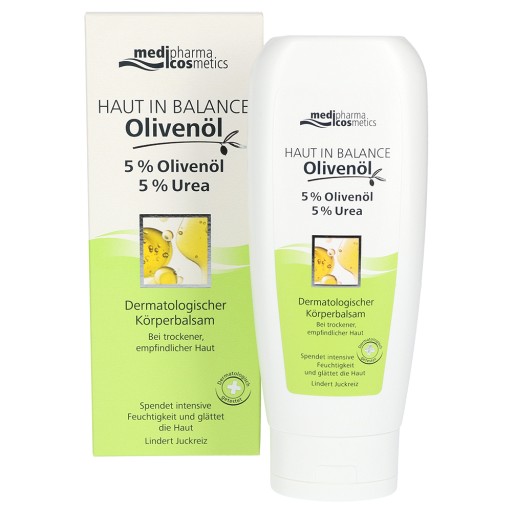 Einzigartige Wirkstoffkombination aus 5 % Olivenöl und 5 % Urea spendet trockener Haut Feuchtigkeit, pflegt sanft und glättet. Der pflegende Körperbalsam stellt die Hautbarriere wieder her, Feuchtigkeit wird gespeichert.