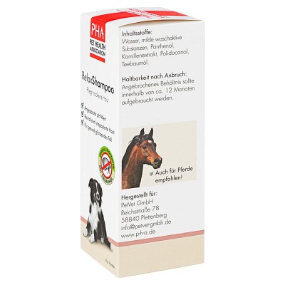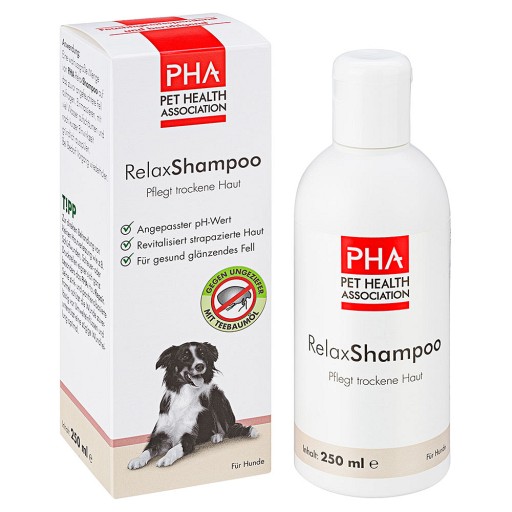 PHA RelaxShampoo mit Teebaumöl enthält milde waschaktive Substanzen und reinigt Haut und Fell schonend. Kamille und Panthenol beruhigen gereizte und empfindliche Haut.Dank dem auf die speziellen Bedürfnisse der Hundehaut abgestimmtem pH-Wert von 7,5 (+/- 0,5), bleibt der natürliche Schutzmechanismus der Haut erhalten.