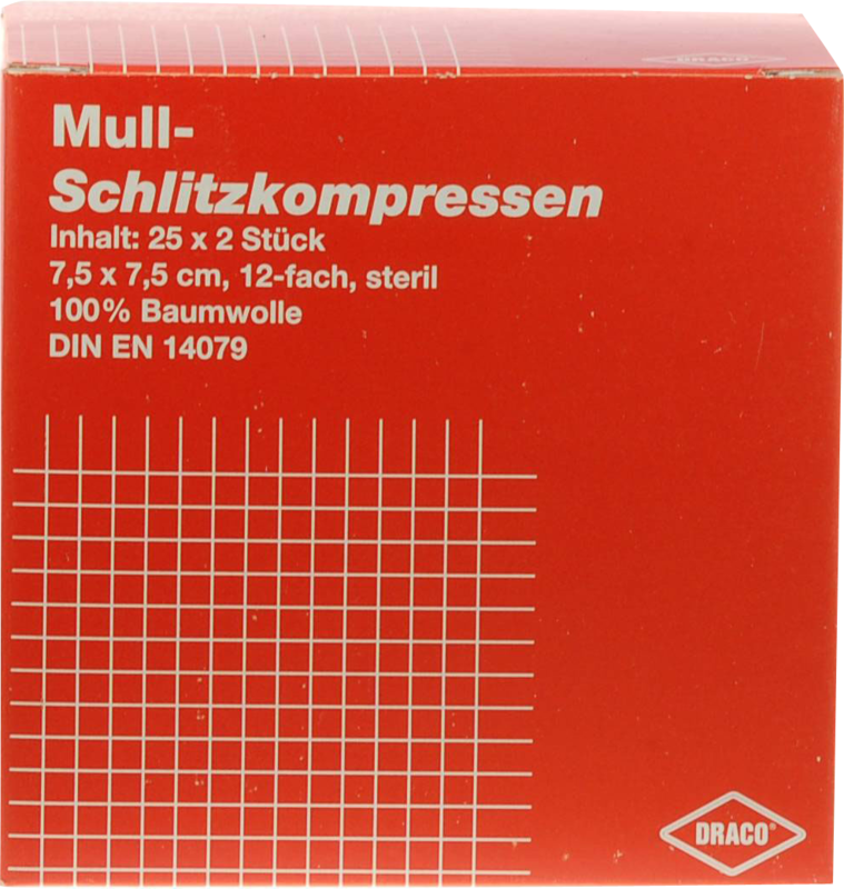 SCHLITZKOMPRESSEN Mull 7,5x7,5 cm steril 12fach 25X2 St