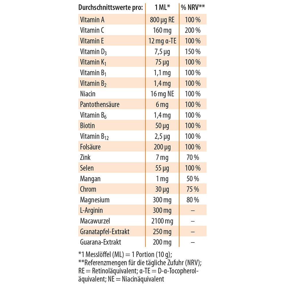 Mit Guarana, Macawurzel, Arginin und Selen