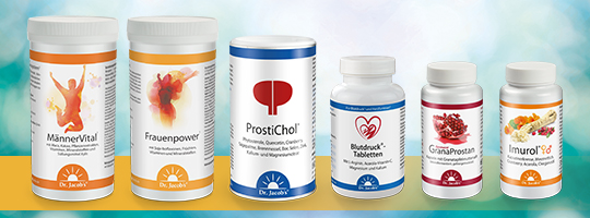Hochwertige, möglichst natürliche und pflanzliche Inhaltsstoffe, strenge Qualitätskontrollen und die Fachkompetenz der Firmengründer sowie eines ernährungswissenschaftlichen Teams machen den besonderen Charakter von Dr. Jacob’s Gesundheitsmitteln aus. Bei der Produktentwicklung achtet Dr. Jacob stets auf die bestmögliche Synergie und optimale Bioverfügbarkeit der besonderen Inhaltsstoffe.