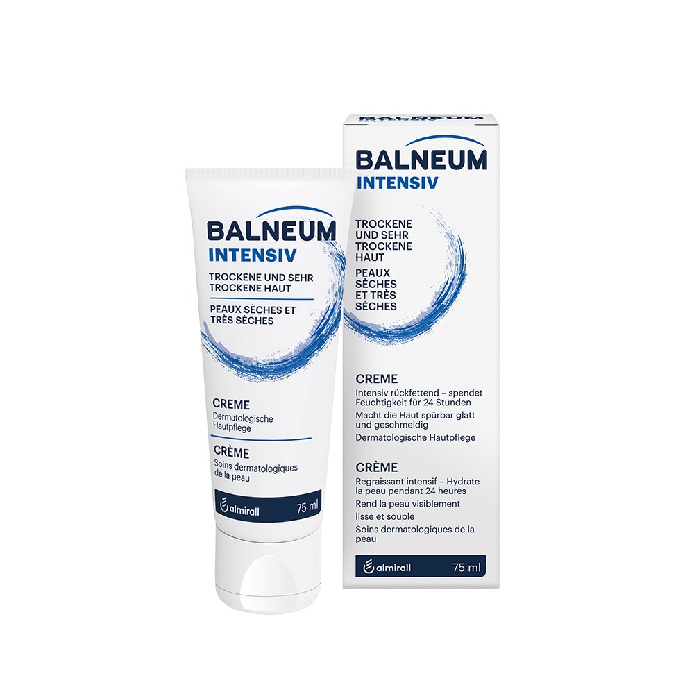 Intensiv rückfettend – spendet Feuchtigkeit für 24 Stunden. Macht die Haut spürbar glatt und geschmeidig.Zur natürlichen Regeneration der Haut. Balneum Intensiv Creme wurde speziell entwickelt, um die natürliche Schutzfunktion trockener und sehr trockener Haut zu erhalten. Führt der Haut die drei wichtigen Substanzen Urea, Ceramide und physiologische Lipide zu, die bei trockener Haut vermindert sein können.