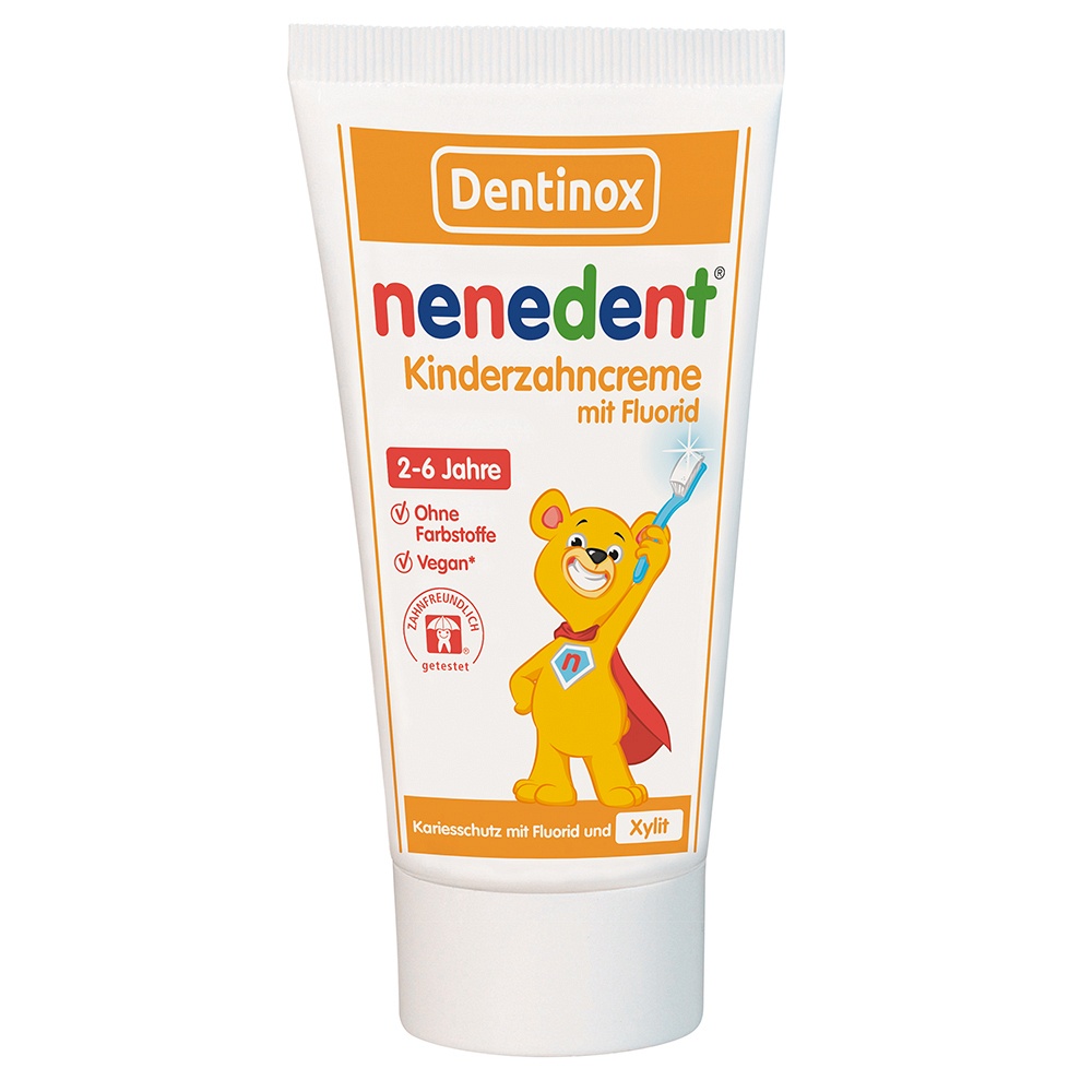 Der perfekte Schutz für Kinderzähne – Kinderzahncreme mit FluoridNenedent® Kinderzahncreme mit Fluorid ist eine spezielle Kinderzahncreme mit Xylit, Fluorid und Kieselgel. Sie ist besonders geeignet für Kinder, die kein weiteres Fluorid erhalten (z.B. in Form von Fluoridtabletten) und für Kinder, die schon zuverlässig die Zahncreme ausspucken können.