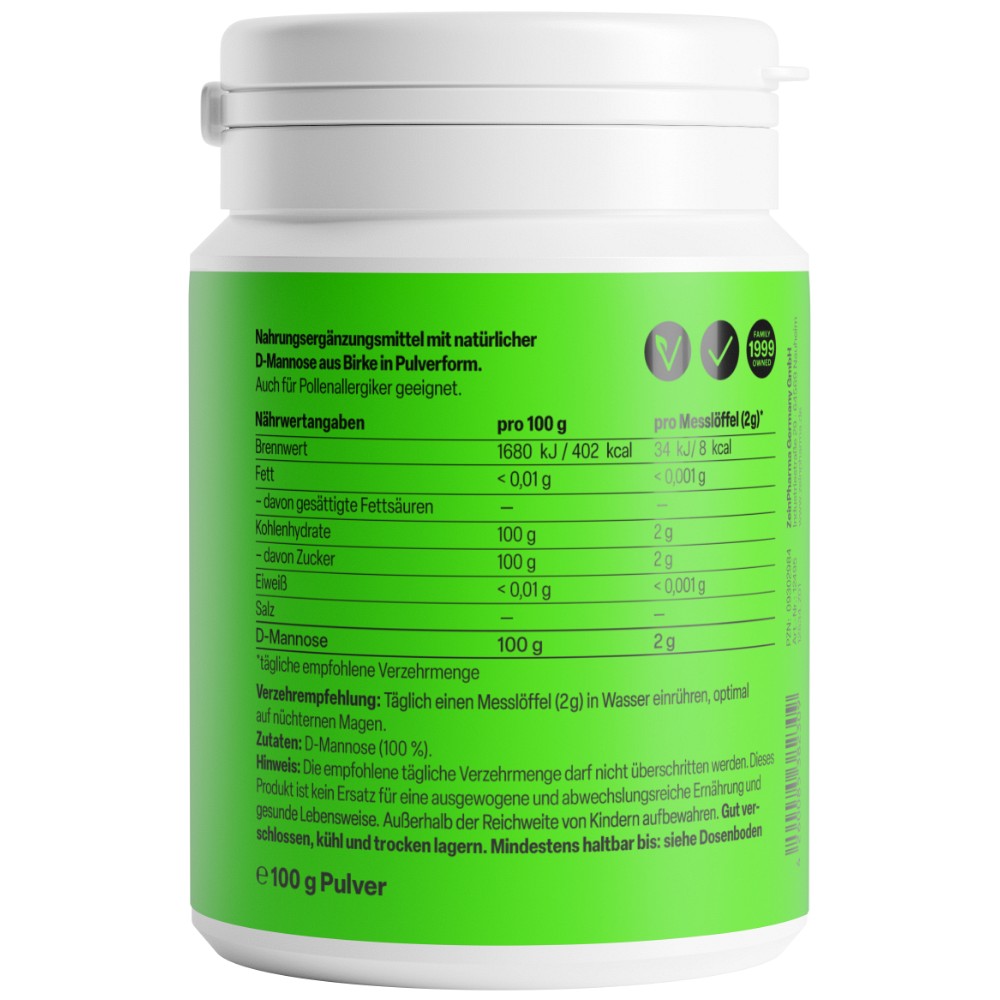 - Schonend gewonnenes, hochreines D-Mannose Pulver aus Birkenrinde, nicht Mais