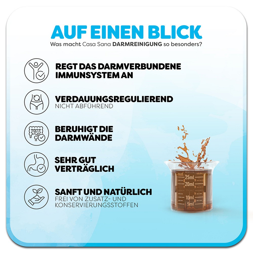 3 x täglich 10-15 ml oder 1 x täglich 30-45 ml pur oder unmittelbar vor Gebrauch mit Wasser verdünnen (Kinder zwischen 4 und 8 Jahren nehmen die halbe Dosis). Anwendungsdauer ca. 10 Tage (500 ml) und ca. 20 Tage (1000ml).Tipp: Der Darm wird schonend und auf natürliche Weise gereinigt.