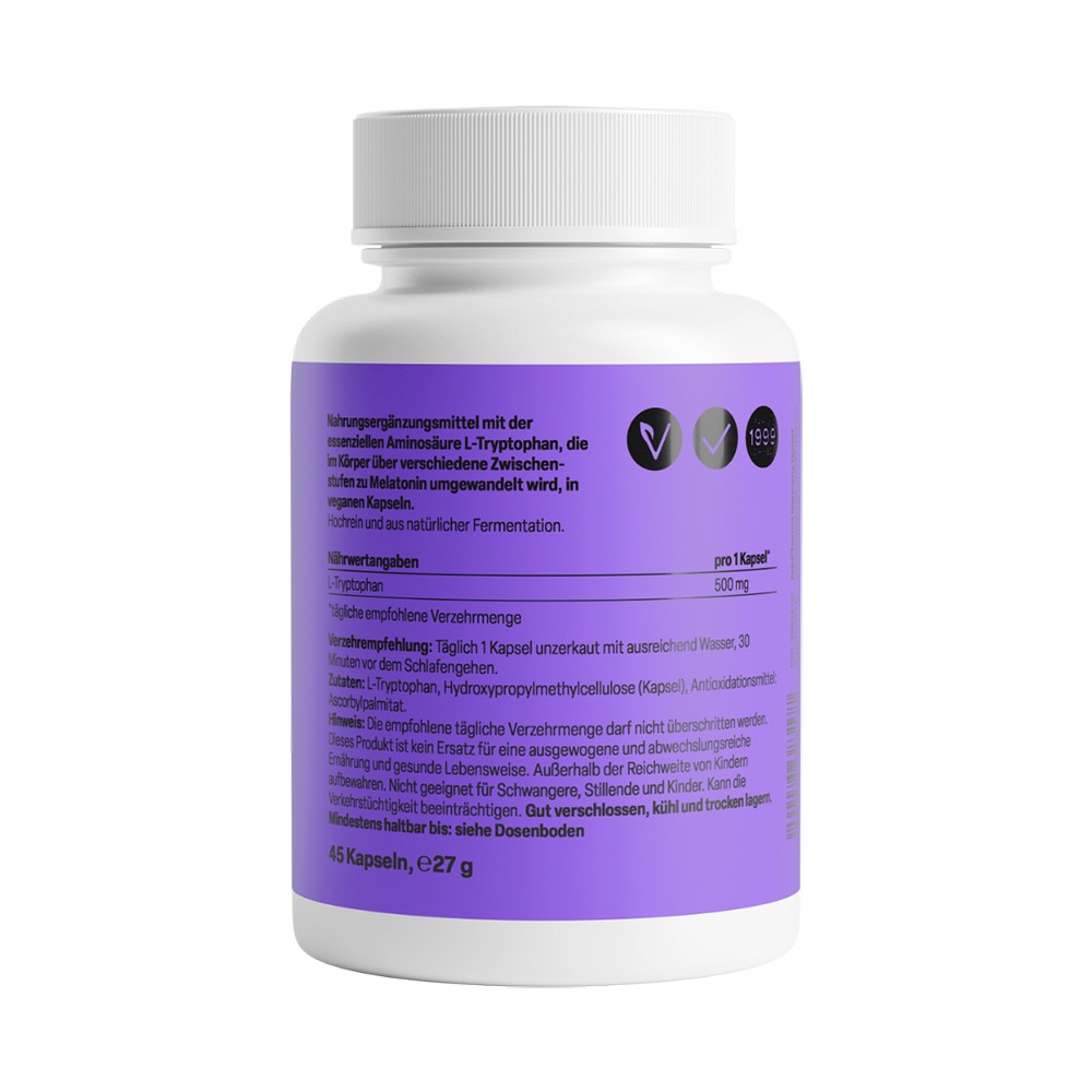 - 100 % natürliches L-Tryptophan zertifiziert mit dem veganen Qualitätssiegel