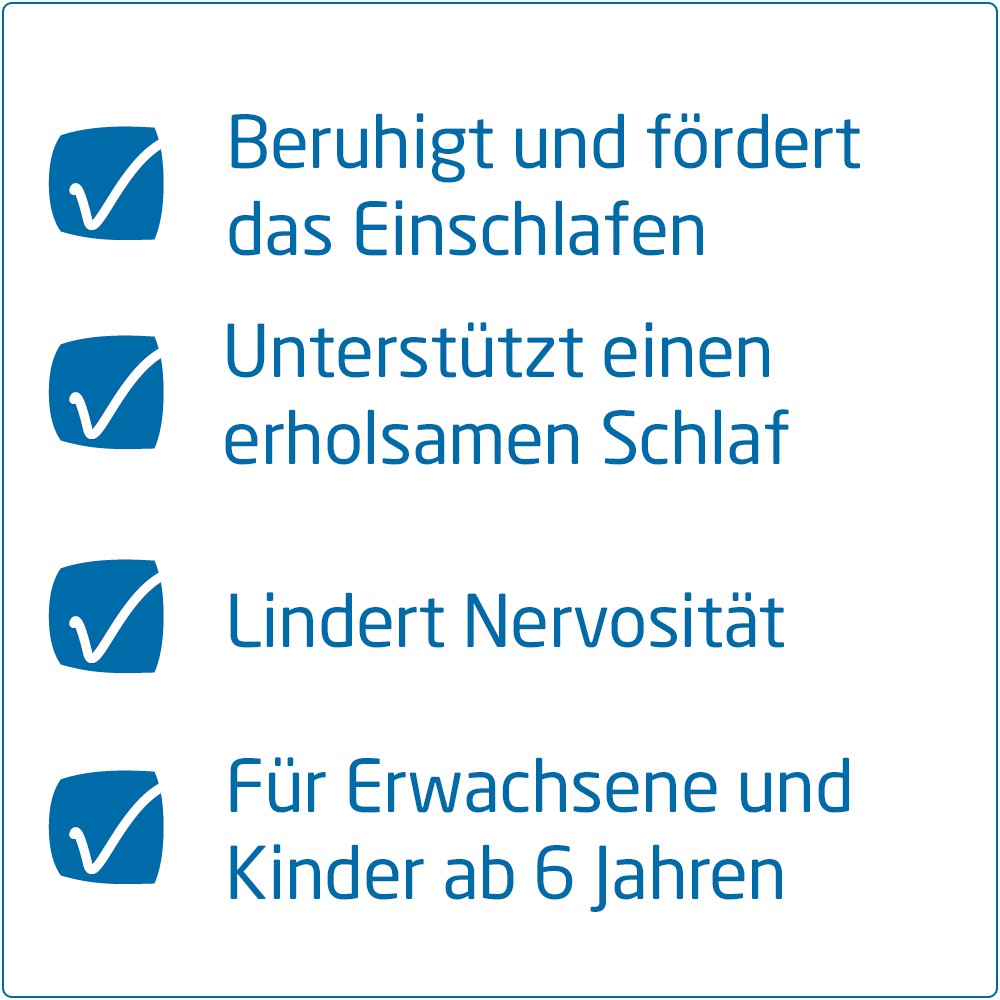 Bei Einschlafstörungen nehmen Erwachsene und Kinder ab 12 Jahren vor dem Schlafengehen 20 - 40 Tropfen ein. Kinder von 6 bis 11 Jahren erhalten 10 - 15 Tropfen.